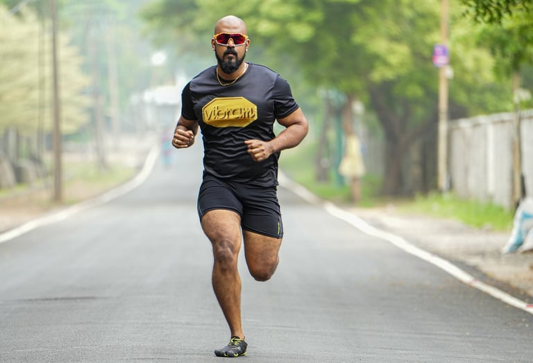 Partnered with my college mate's new running apparel brand, 42 KM, by wearing their tank and shorts — giving them visibility.